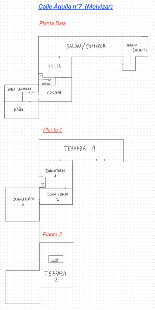 Casa Adosada de 95m2 en Molvizar. Cuenta con tres plantas, 3 dormitorios, salón, cocina, baño completo, salita y terraza.